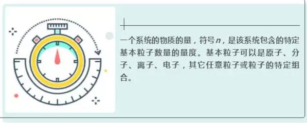 一個(gè)系統(tǒng)的物質(zhì)的量,符號(hào)n,是該系統(tǒng)包含的特定基本粒子數(shù)量的量度?;玖W涌梢允窃?、分子、離子、電子,其它任意粒子或粒子的特定組合。